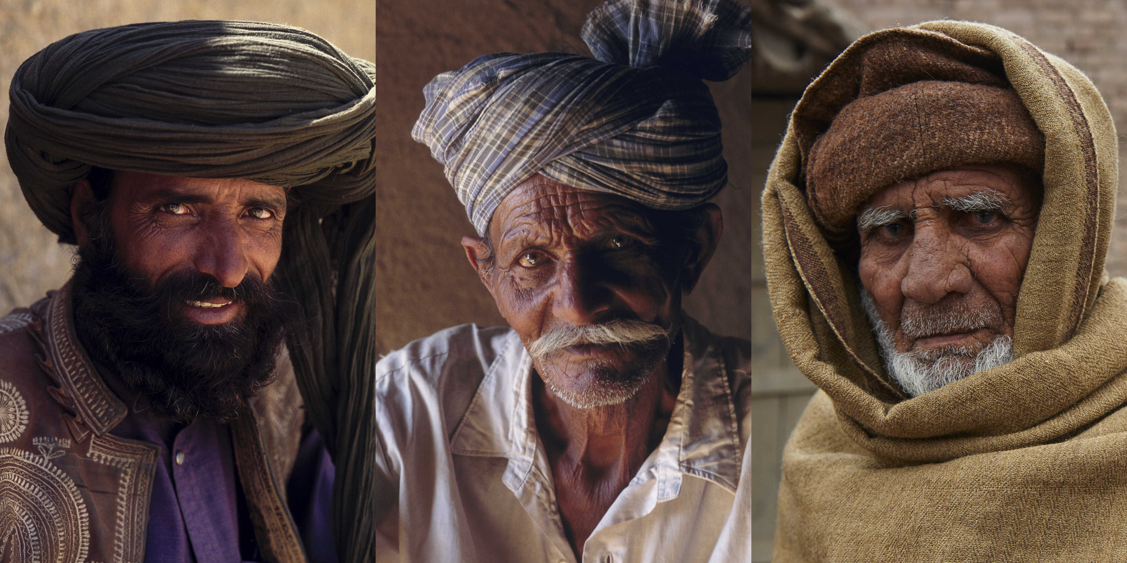 Portraits of three men reflecting Pakistan’s diverse cultures and traditions.